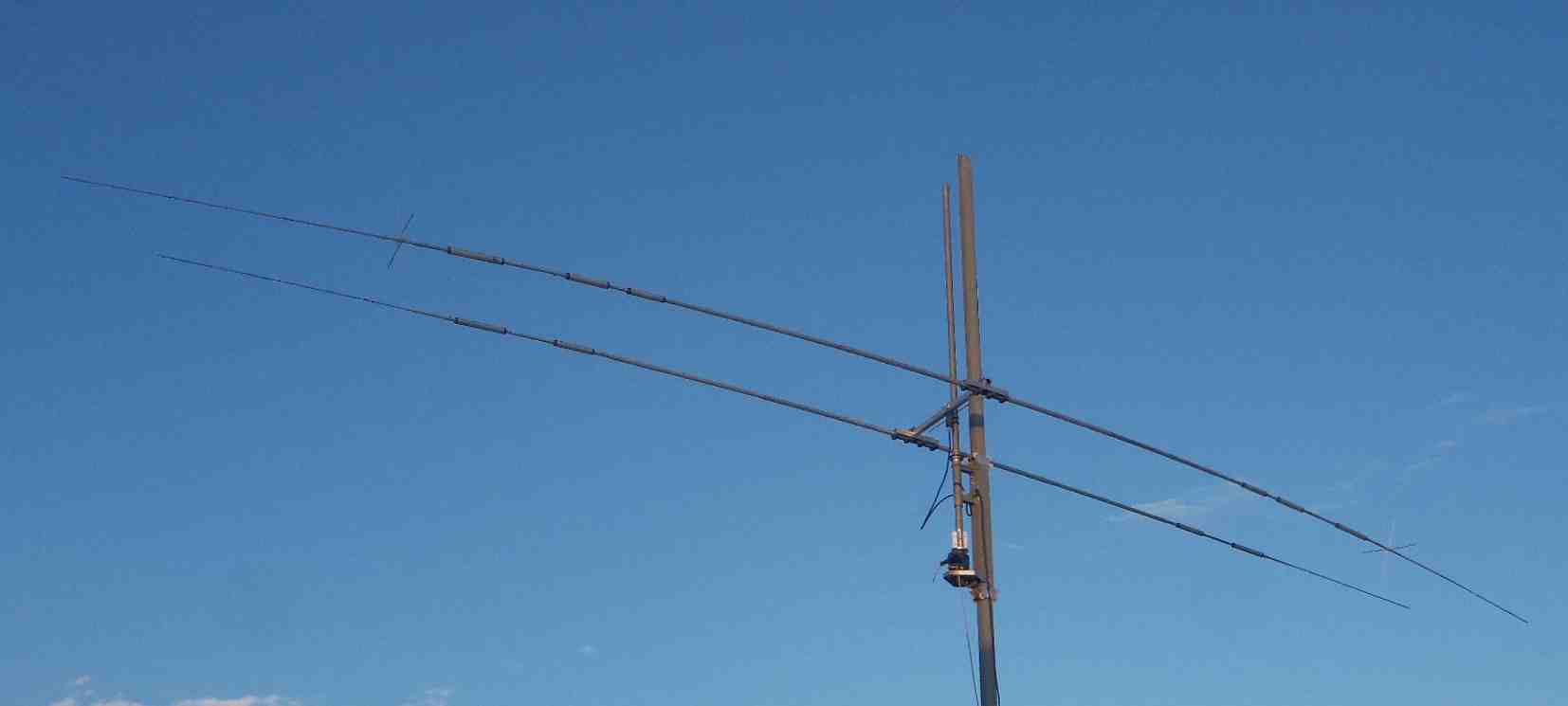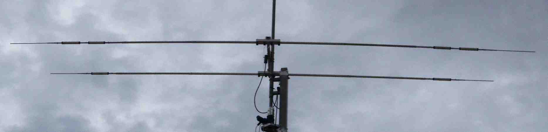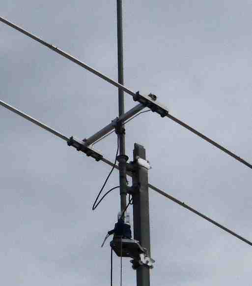 Moultiband trapped double rotating dipoles. Antenna looks like a small yagi being dipoles placed on 1m short boom. Both dipoles are parallel powered trought an hard feed line and a 1:1 balun using single coax.