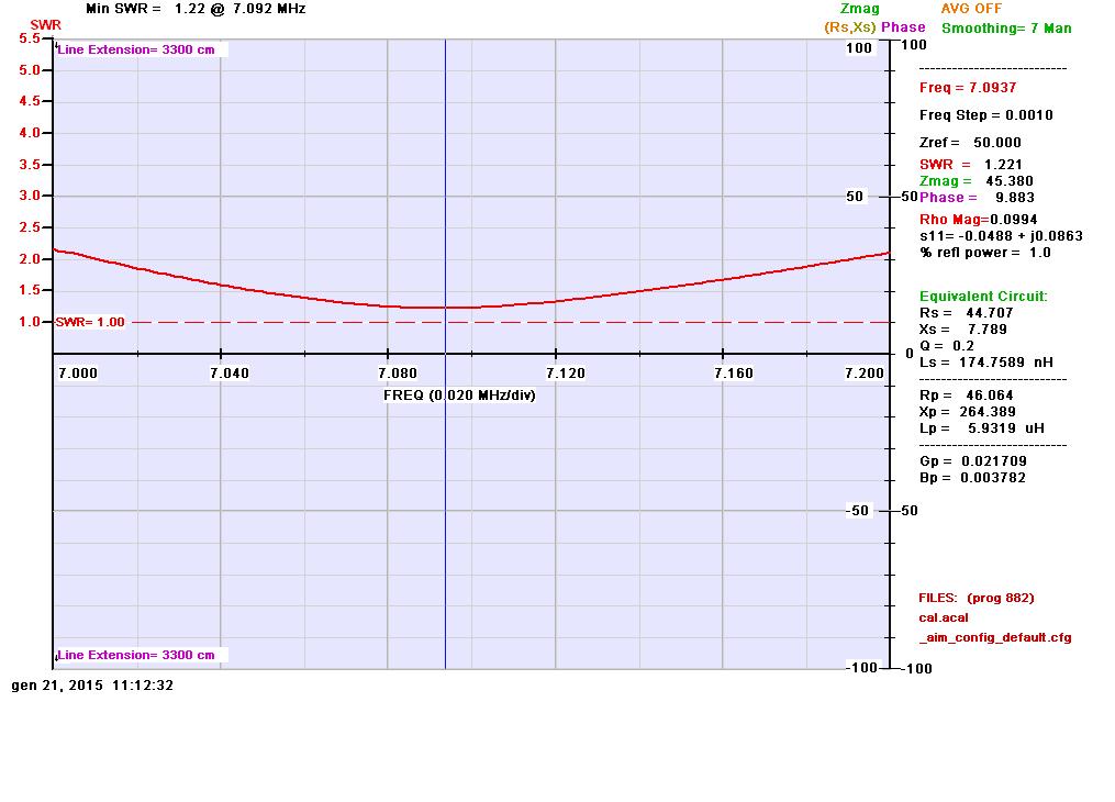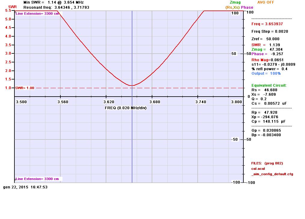 The on air tests, performed for many months and in all possible conditions including rain, wind storm and snow, have always given average results above to a classic inverted V full size dipole.